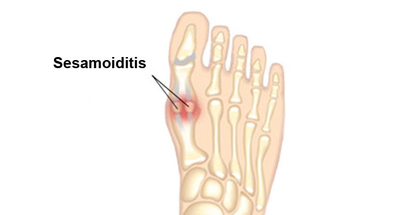 Sesamoiditis can generally be identified form other foot ailments due to its gradual onset of symptoms just beneath the big toe.